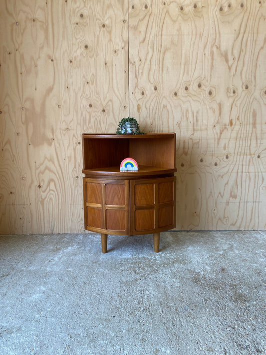 Retro Mid Century Vintage Corner Drinks Cabinet by British makers GPlan on Wooden Tapered Legs