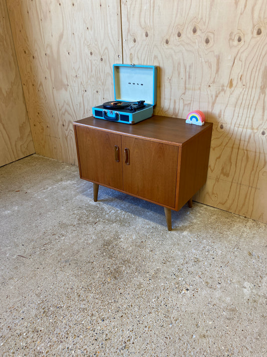 Retro Vintage Mid Century Record Cabinet by British makers Beaver & Tapley on Wooden Tapered Legs