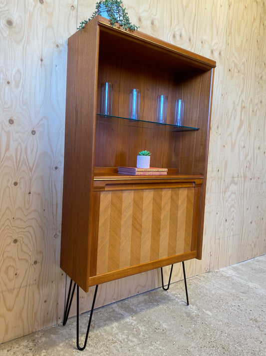 Mid Century Retro Vintage GPlan Chevron Drinks Cabinet on Black Hairpin Legs