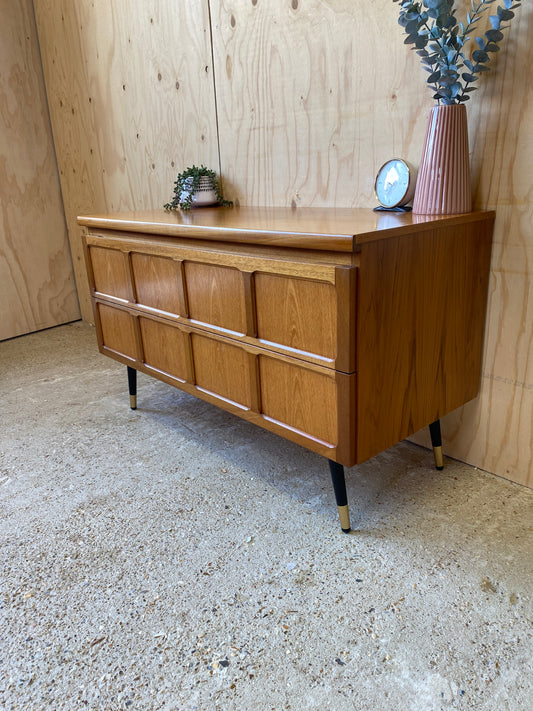 Mid Century Retro Vintage Nathan Sideboard on Black & Gold Tapered Legs