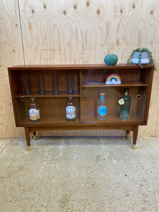 Mid Century Retro Vintage Glass Sliding Doors Drinks Cabinet