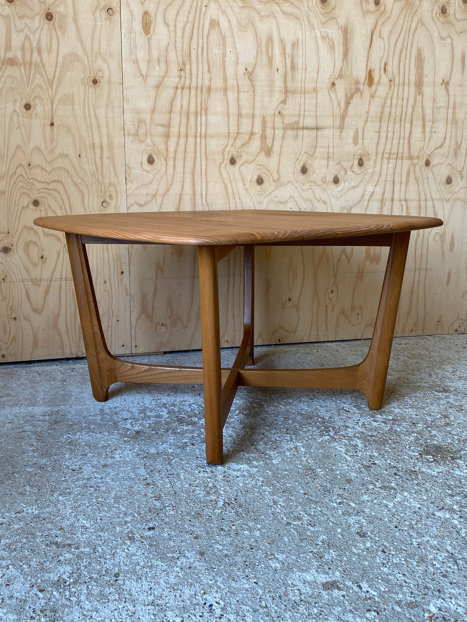 This coffee table has had it's top refinished, the legs have been cleaned and re oiled. As with most items of this age there may be light signs of use otherwise it is in fantastic condition!