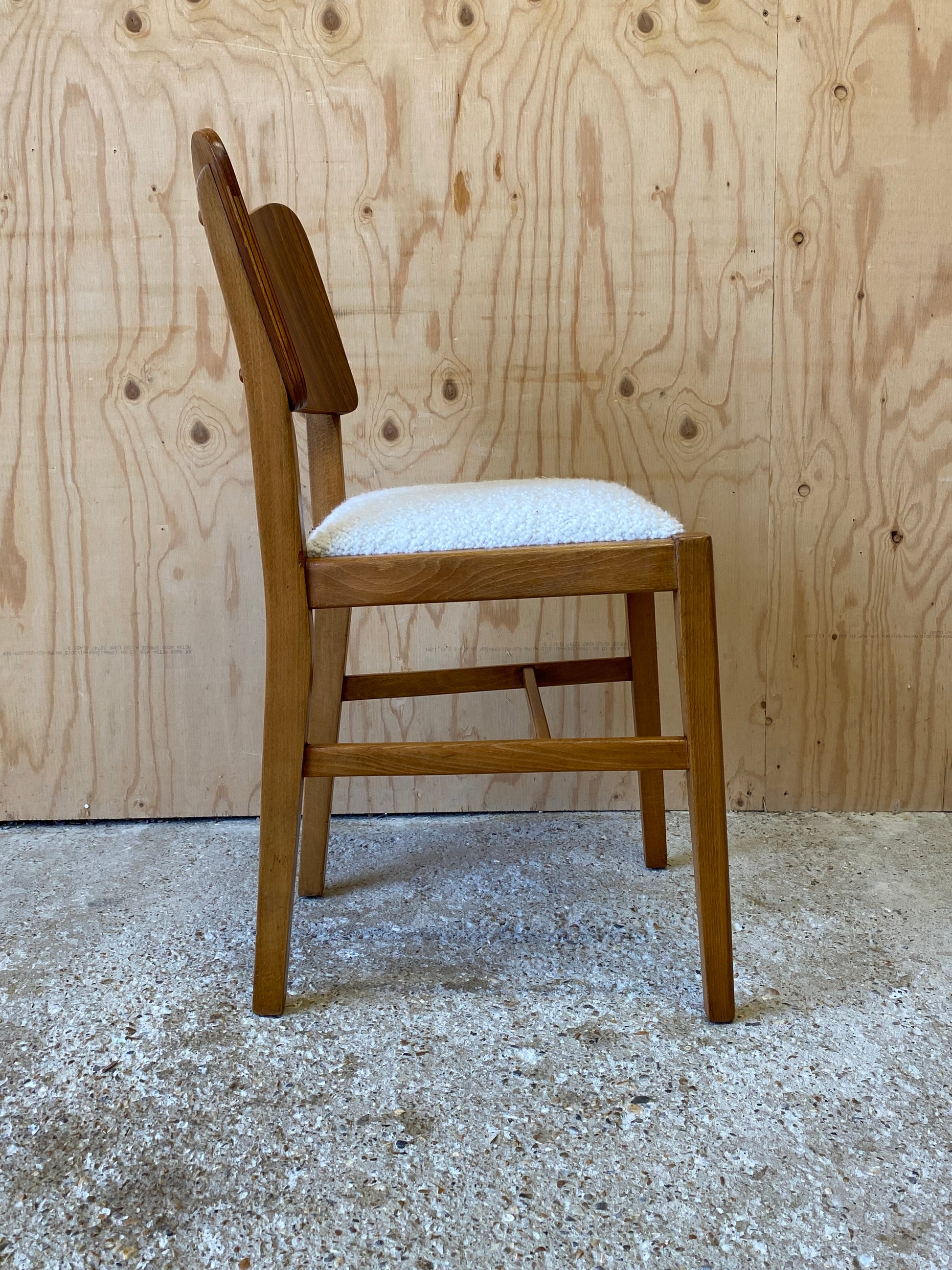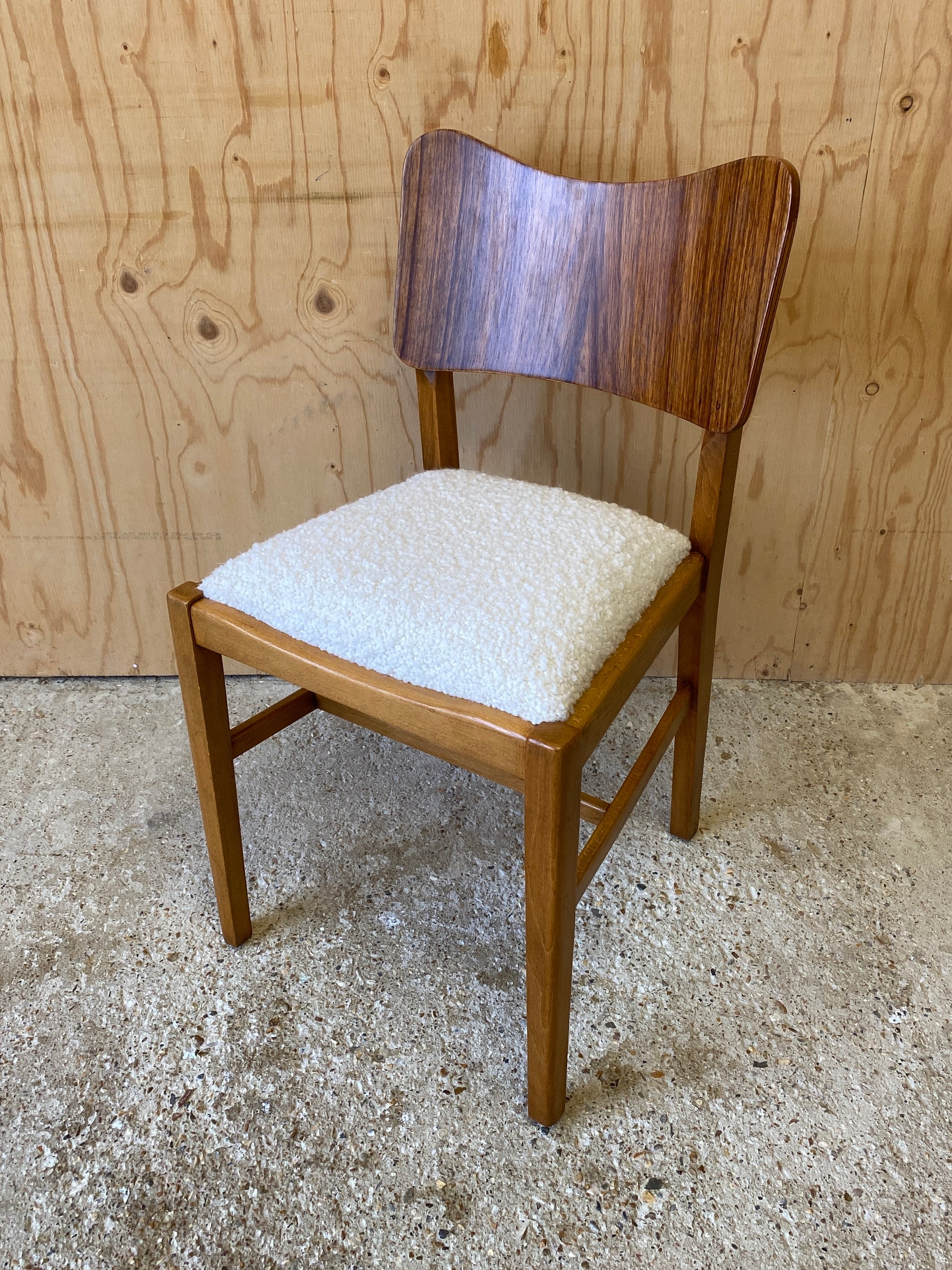 A lovely set of vintage dining chairs reupholstered in a beautiful Bouclé.