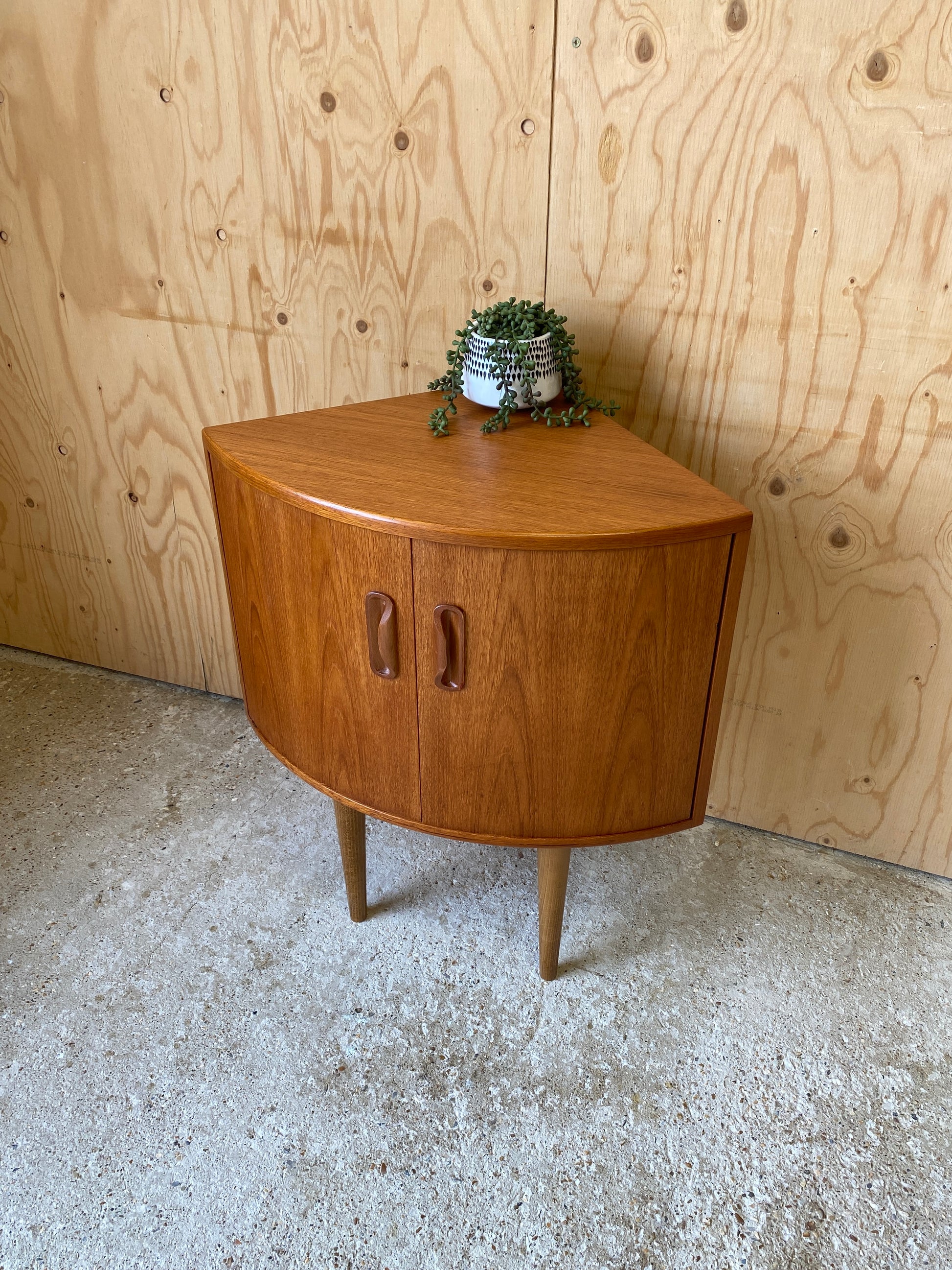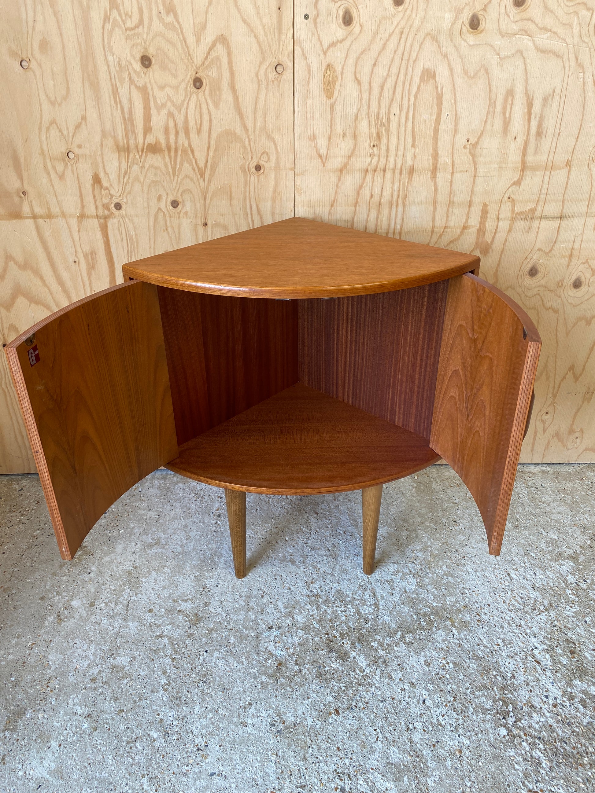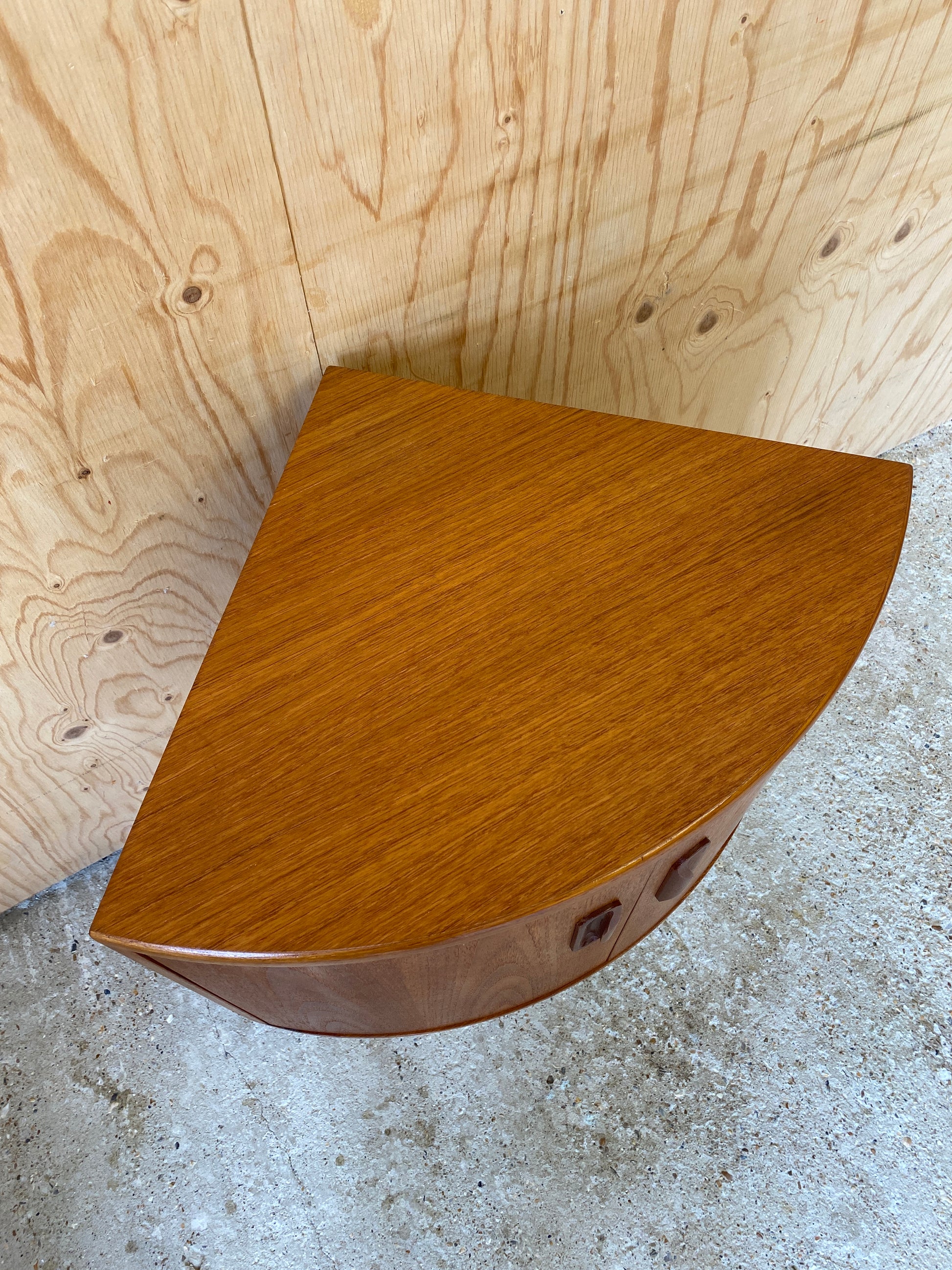 A lovely GPlan Fresco corner cabinet with its original sticker on the inside of the door dating the unit back to the mid 60s - 70's