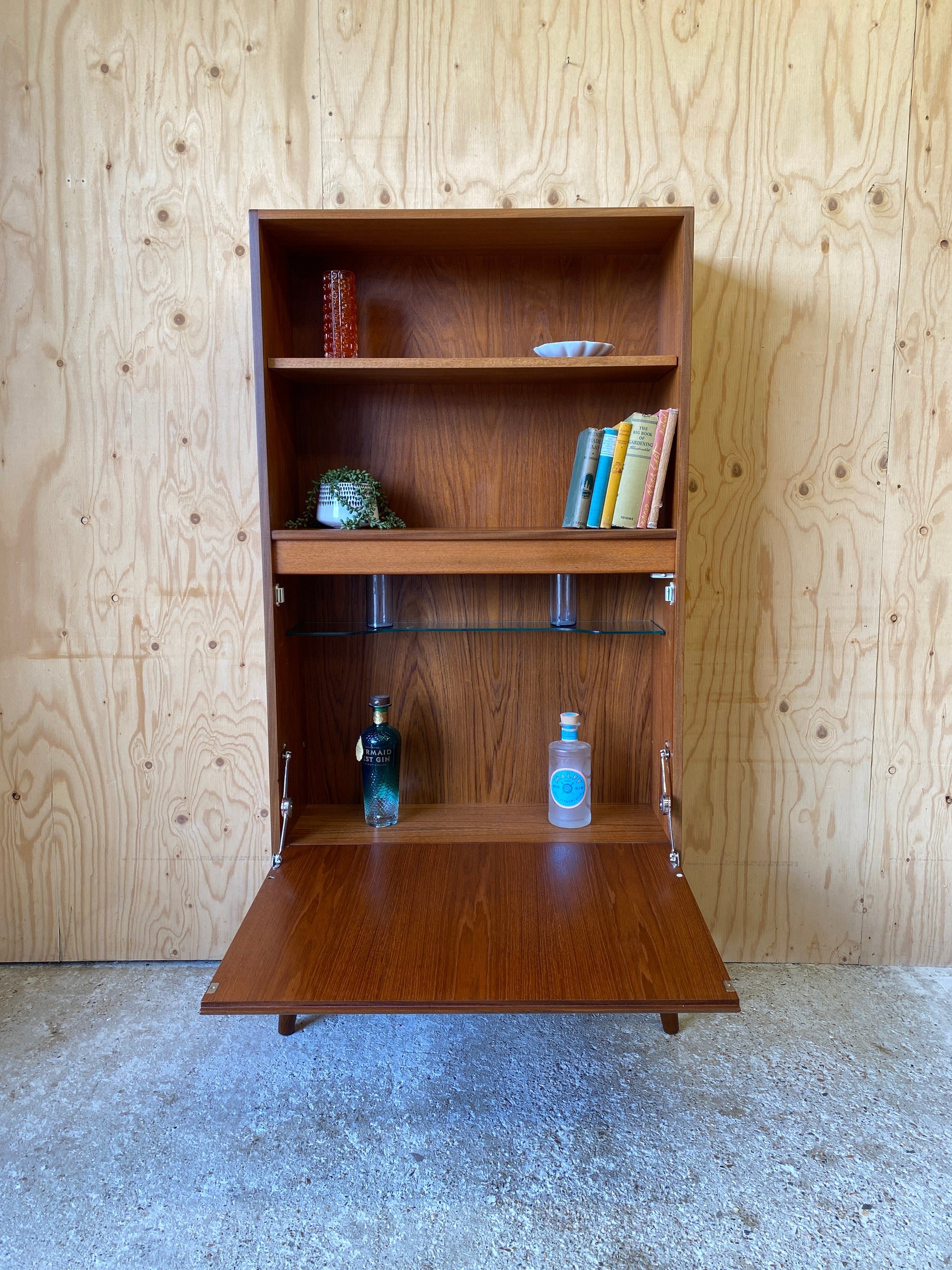Here is a gorgeous GPlan fresco drinks cabinet featuring a cupboard with a pull down door and height adjustable shelve inside🍸