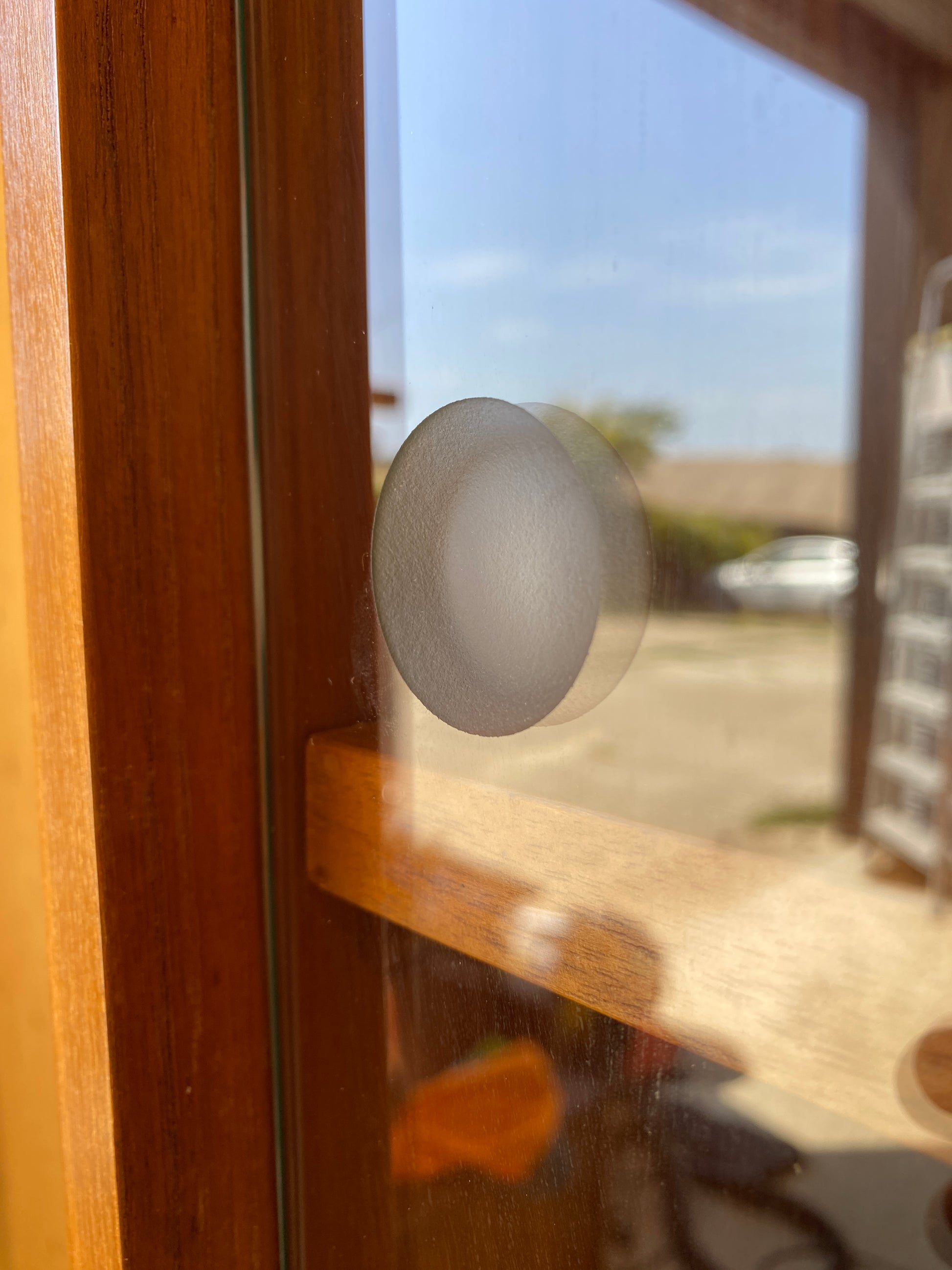 The cabinet features two sliding glass doors with a removable and height adjustable shelve behind!