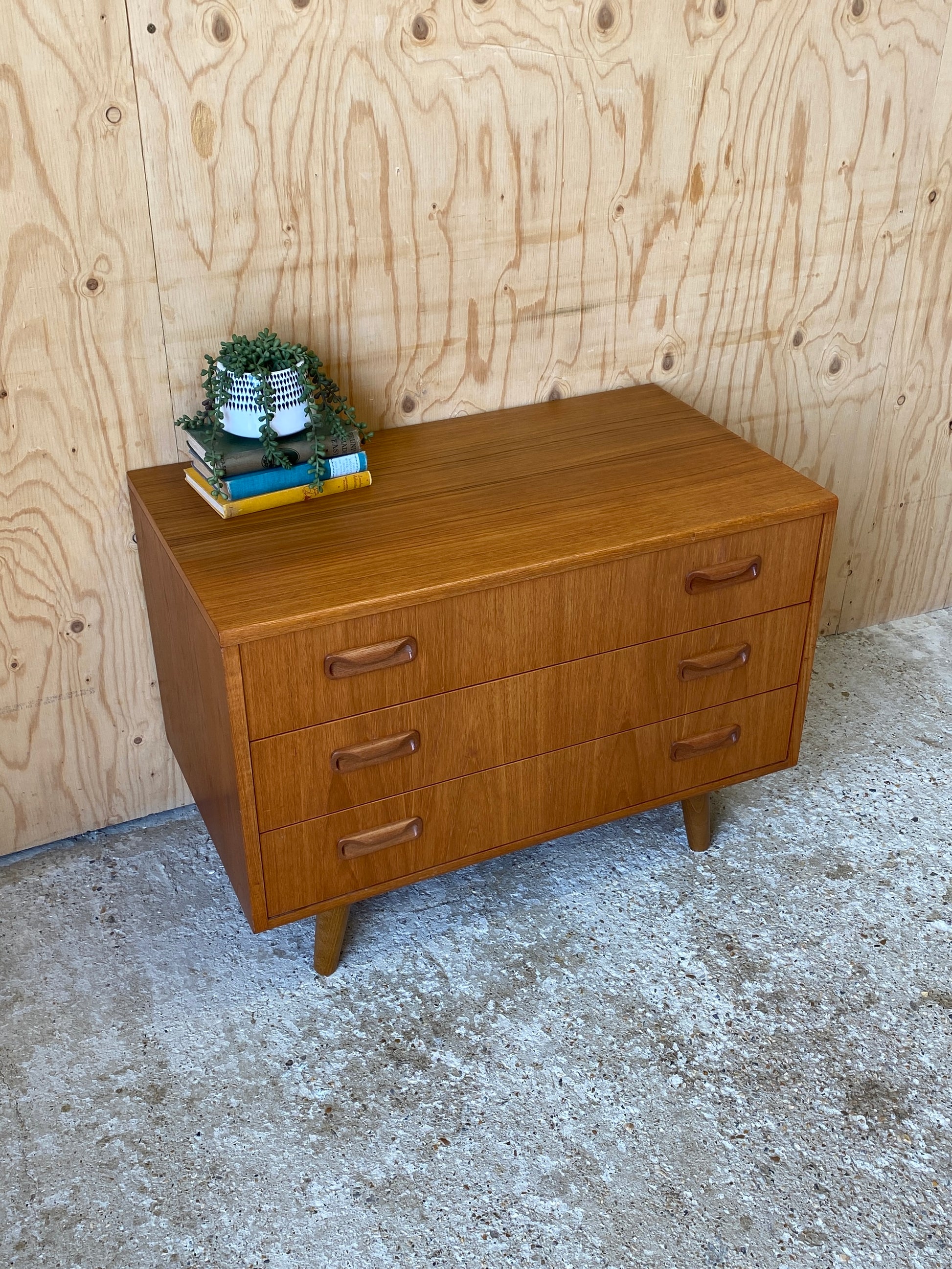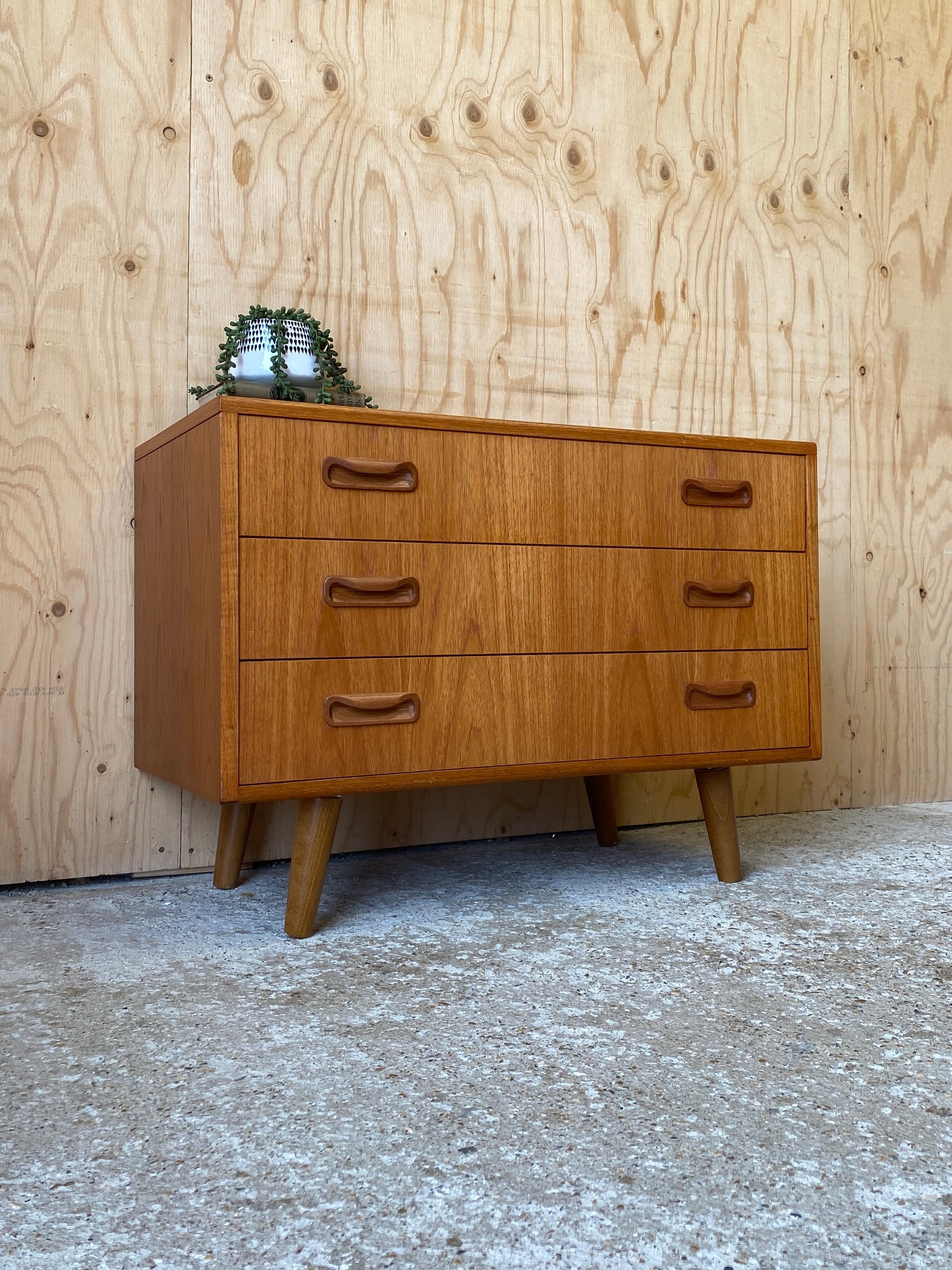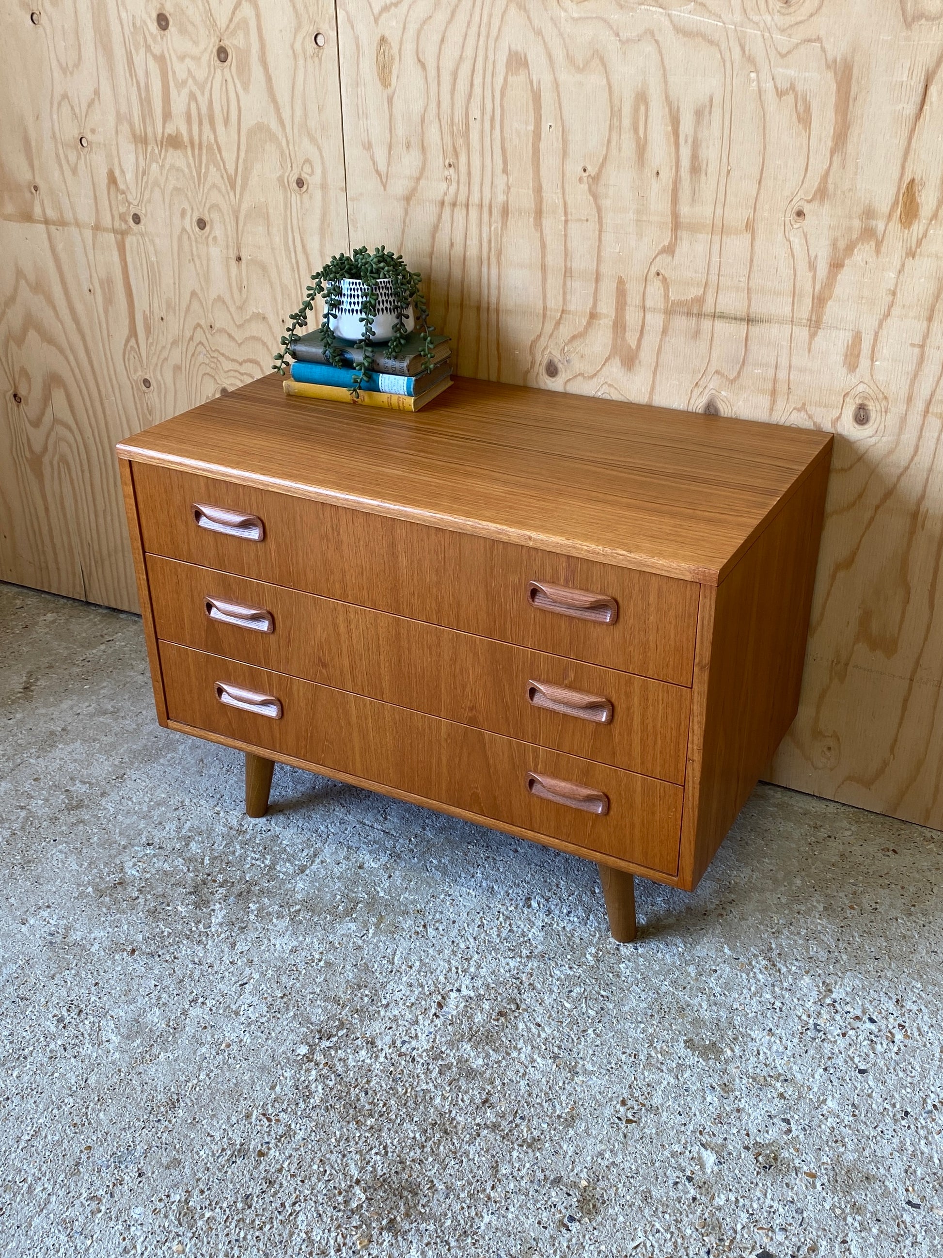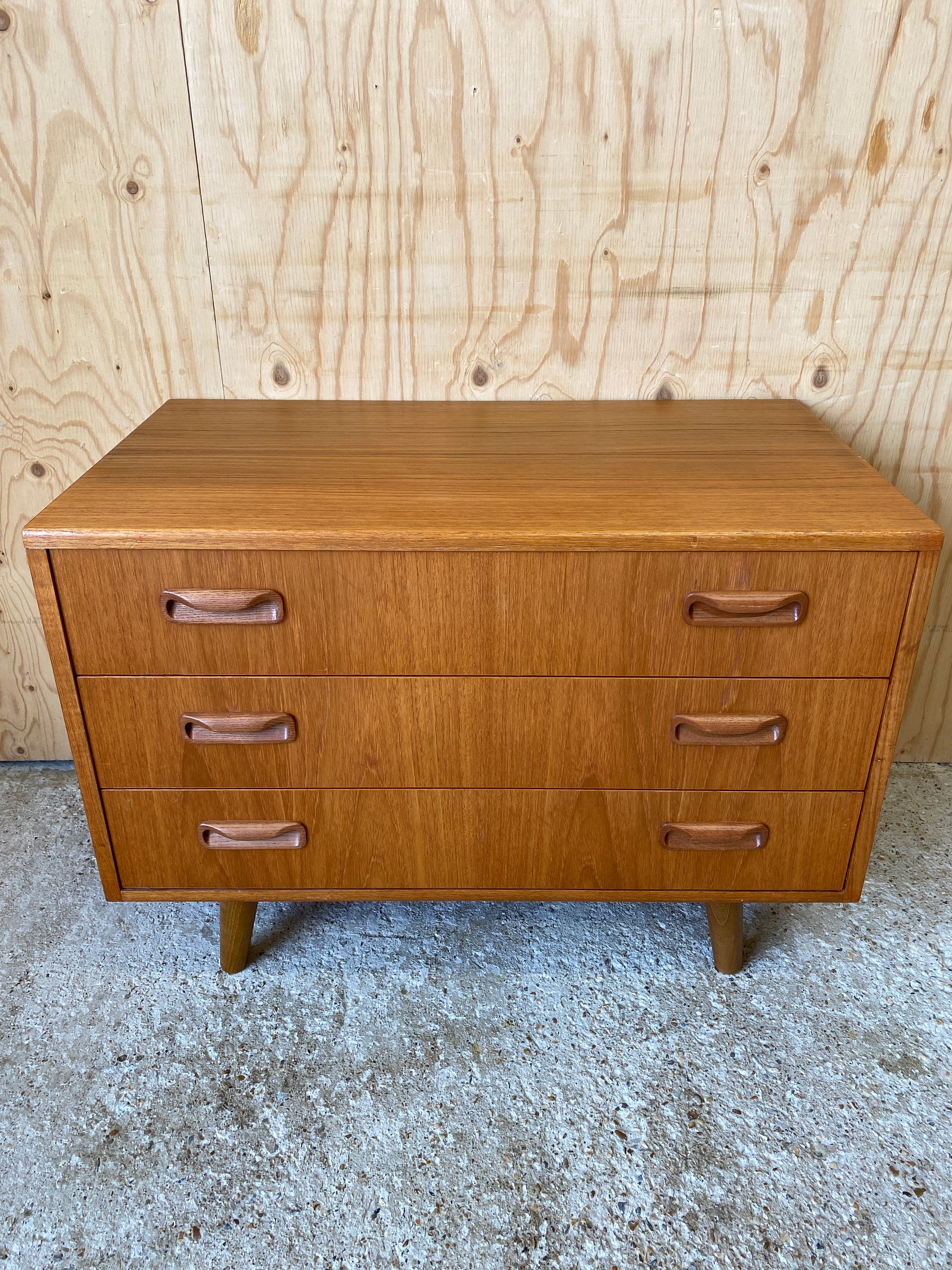 A lovely chest of three drawers by GPlan still showing the original label dating them back to the mid 70s - 80s!