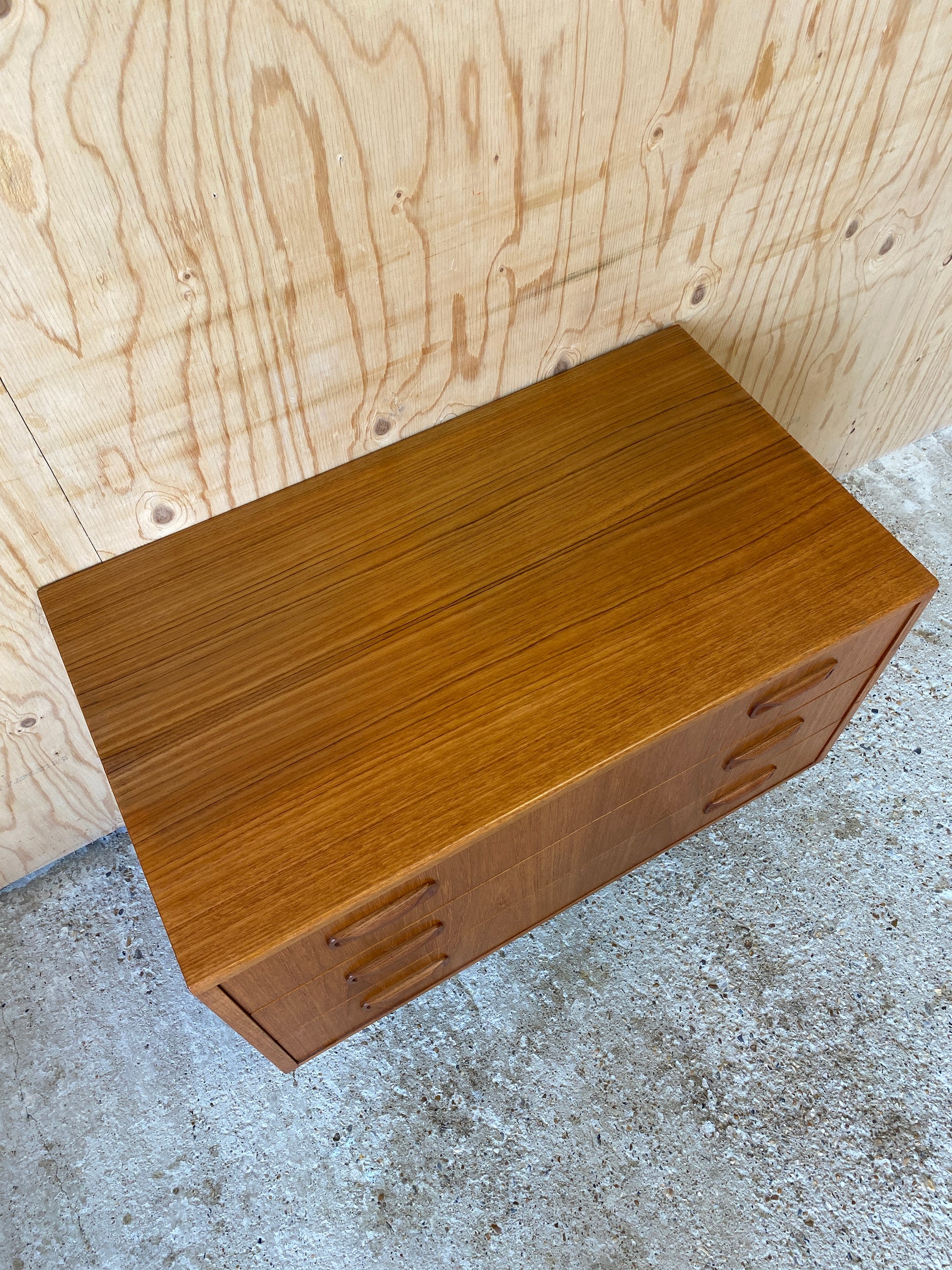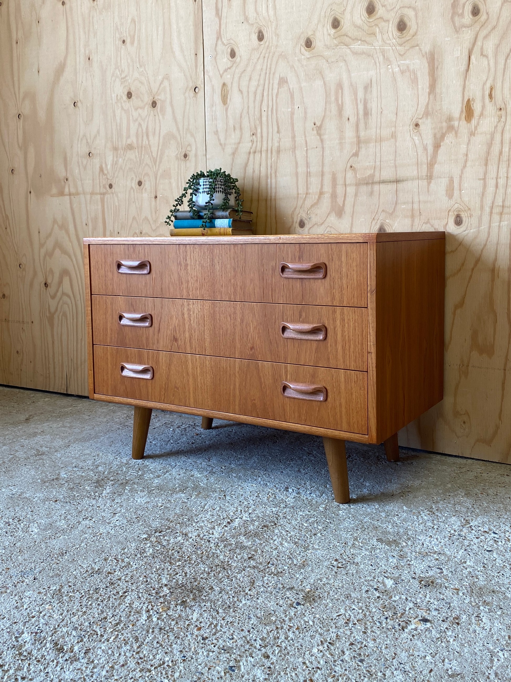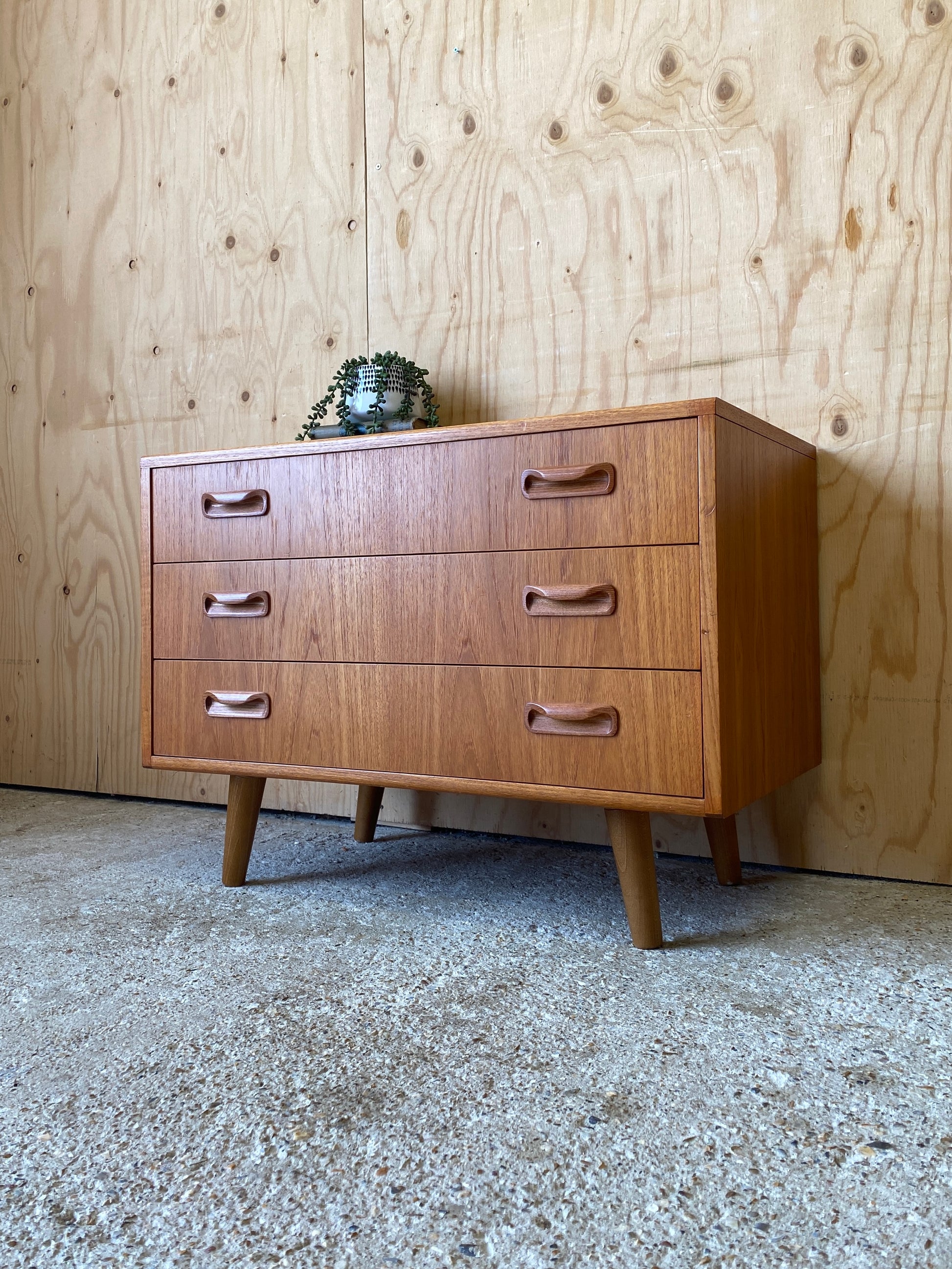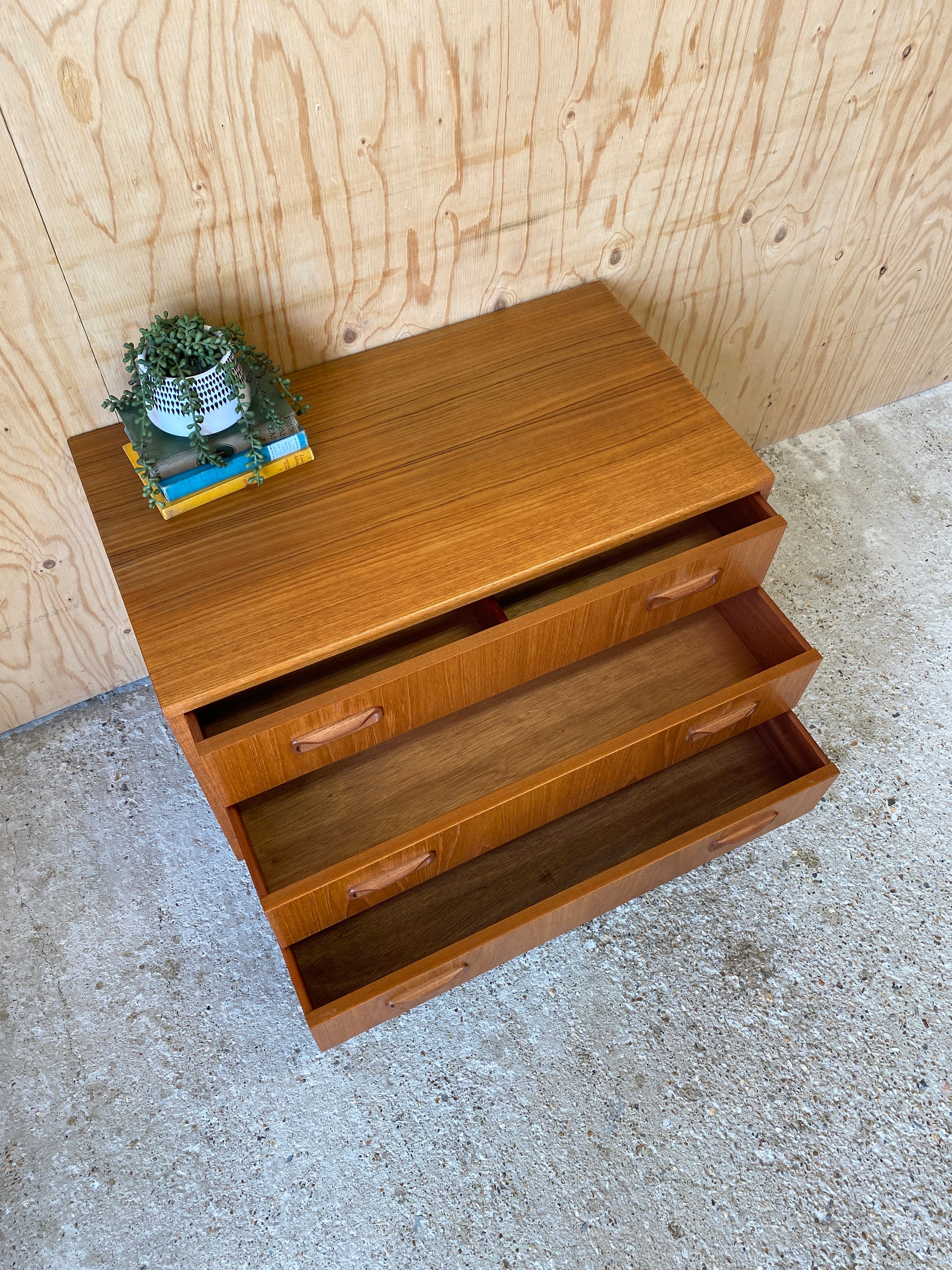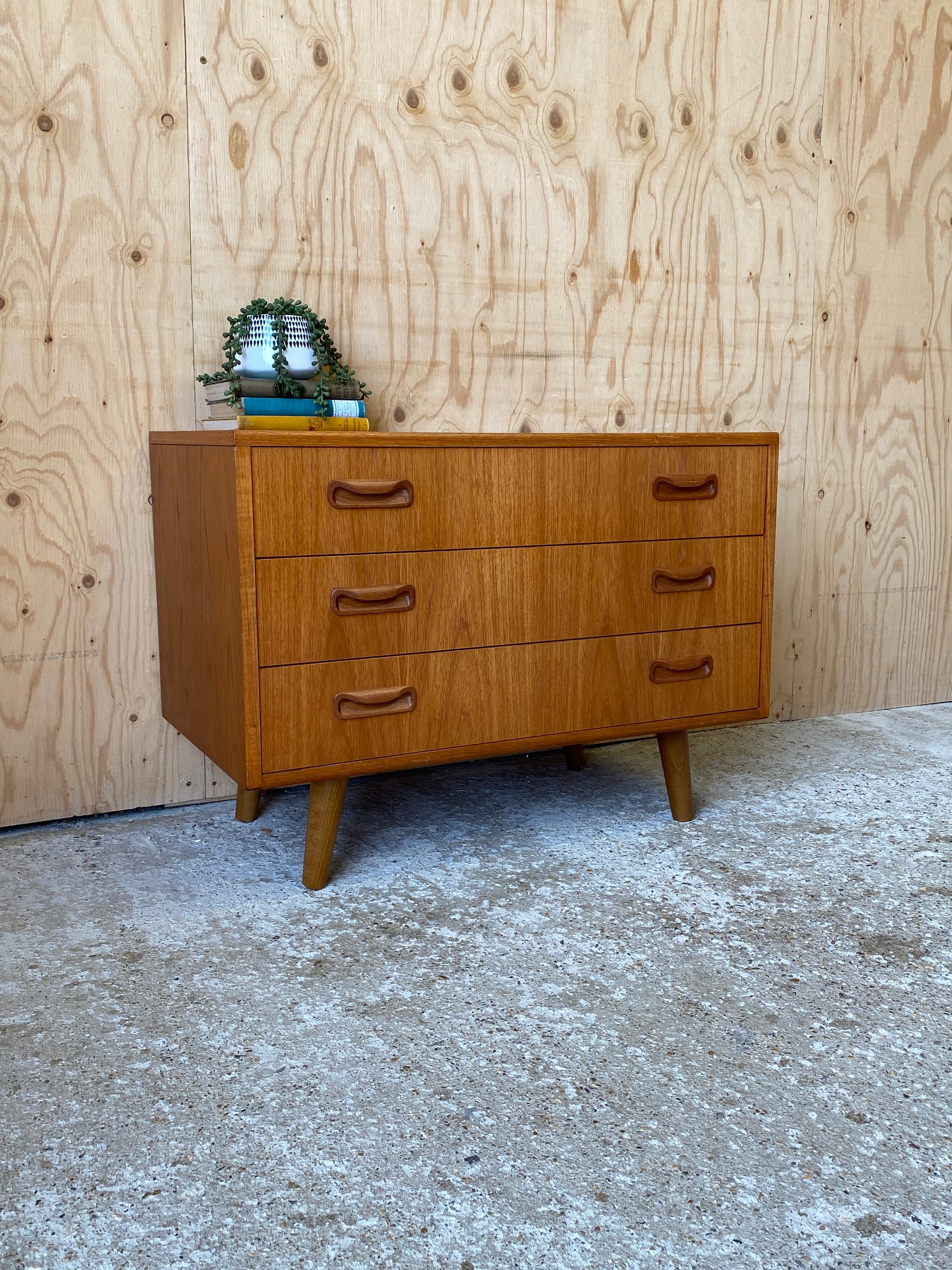 A lovely chest of three drawers by GPlan still showing the original label dating them back to the mid 70s - 80s!