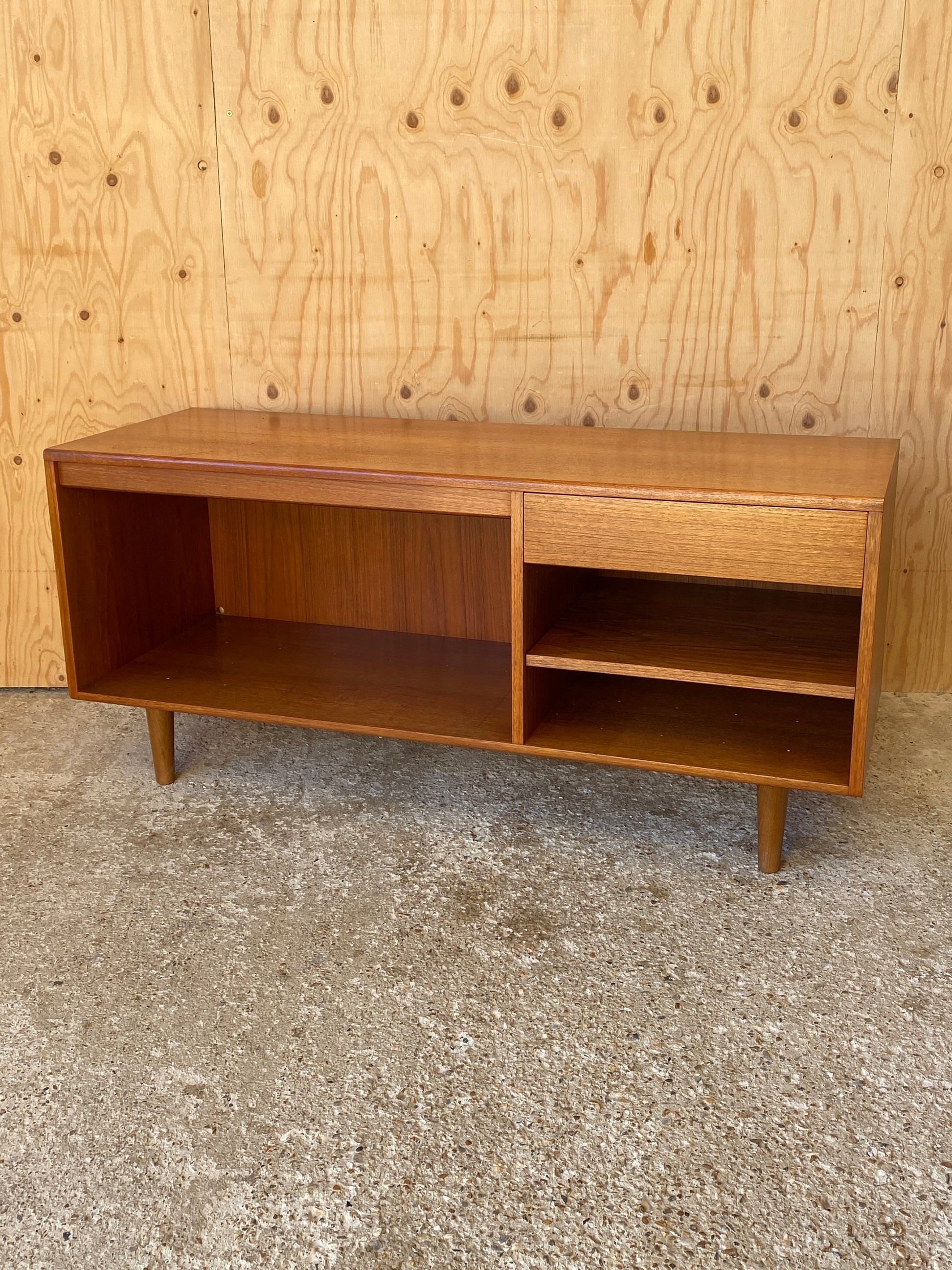 This unit is perfect for use as a TV or record player stand with space below for storing vinyls. The shelf under the drawer is also removable.