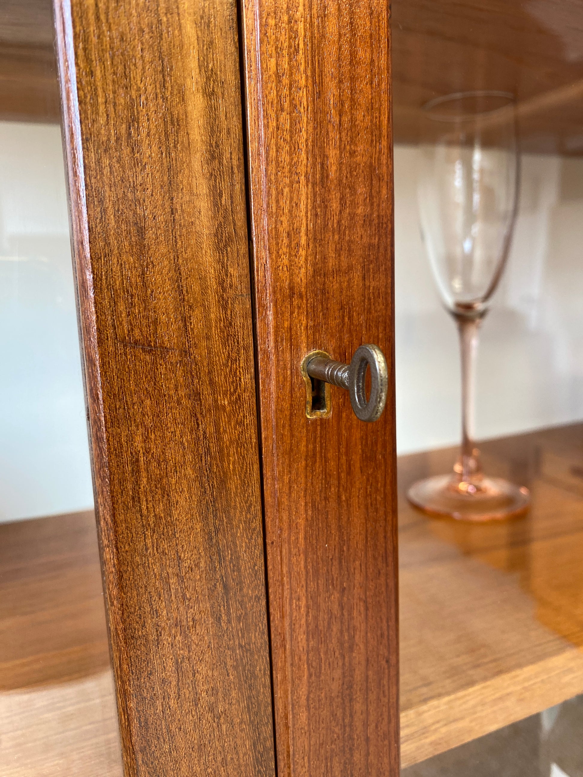 A lovely glass door cabinet fitted with a key & lock , this cabinet is perfect for storing all your glassware 🍸