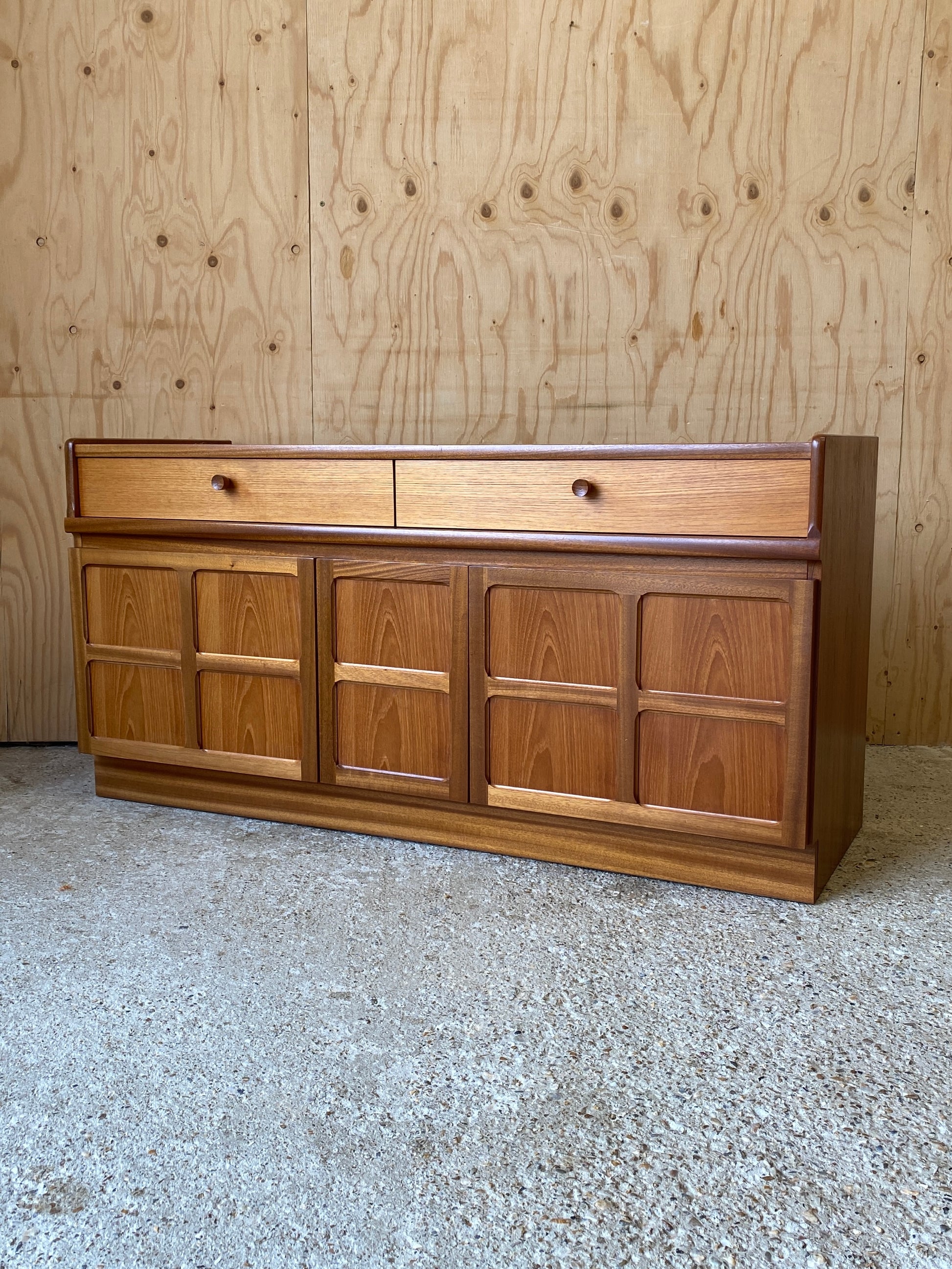 It features two good sized cupboard perfect for storing vinyl records! The shelve shown in the left cupboard is removable.